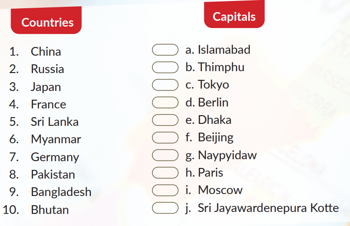 Q-2 Match these countries with their capitals