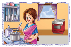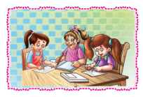 चित्रों को ध्यान से देखिए और उनके नीचे उपयुक्त वाक्य लिखिए